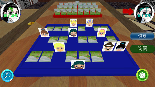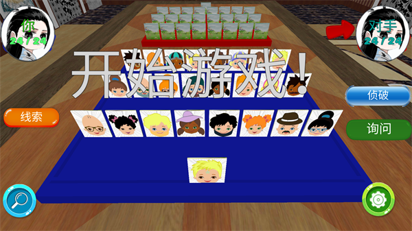 8、根据对手的回答排除人物。