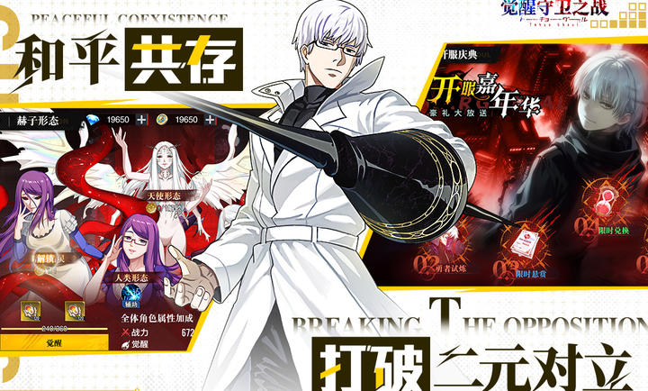 觉醒守卫之战手游是一款以知名动漫《东京喰种》为背景的卡牌对战手游,戏以《东京喰种》为蓝本,忠实地再现了东京的情节,角色拥有全新的3D形象,并由原班声优阵容配音,采用卡牌对战玩法,玩家需要收集角色卡牌,组建强力阵容,通过策略搭配和战斗技巧来击败敌人,可以根据角色的定位、技能等方面来进行搭配,组成不同的阵容以应对不同的战斗场景。画面精美,剪辑动画质量很高,几乎达到了电影级的视觉效果,带来震撼的视听享受。
