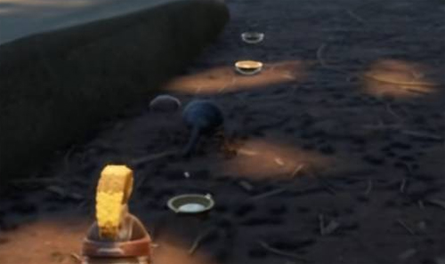 4、然后在宠物的行径上放置好你的诱饵,最少需要两碗。