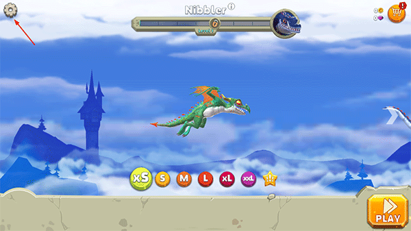 1、首先打开饥饿龙国际服,点击左上方设置按钮;