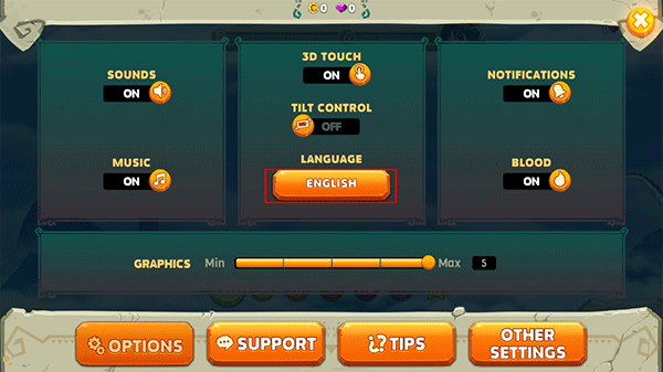 2、设置中文方式:进入游戏,弹出“Terms and Conditions”弹窗-->点击下方“ACCEPT”,进入游戏主菜单界面-->点击左上角“设置”图标,进入“菜单”界面-->点击“LANGUAGE”选项下方的“ENGLISH”,进入“LANGUAGE”界面-->点击下方“繁體中文”,连续点击右上角“x”即可。