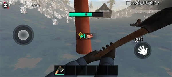 5、装上斧子后走到树旁边,就可以开始砍树了,