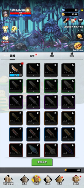 3.在闯关的过程中,装备也是必不可少的一环,我们可以直接添加武器进行合成,然后直接进行装备使用;