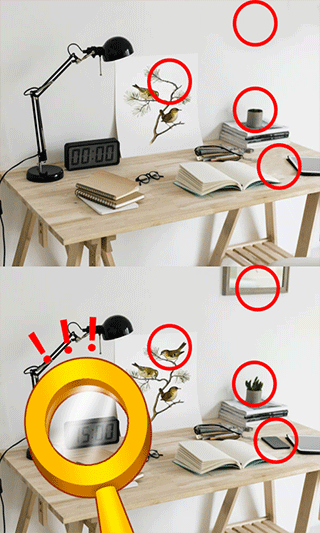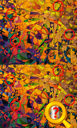 不同之处可能涉及颜色、形状、位置、有无元素等,考验多维度观察能力,避免单调重复。