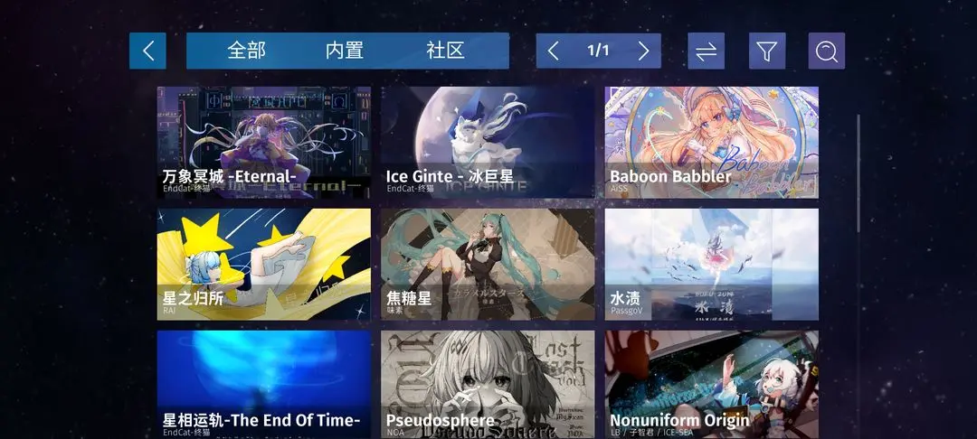内置选项可以查看由官方提供的谱面,这些谱面有质量保证,不可删除。