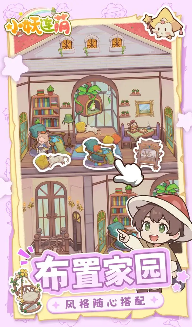 小妖连萌是一款治愈系模拟经营游戏,在小妖连萌中,你将化身秘境的新任守护者,与可爱的小妖们相遇,共同重建这个温暖如梦的家园。游戏以“异世界魔物种植”为核心,独特的手绘风画面、自由建造玩法与沉浸式剧情叙事,为你带来更加轻松治愈的经营之旅。