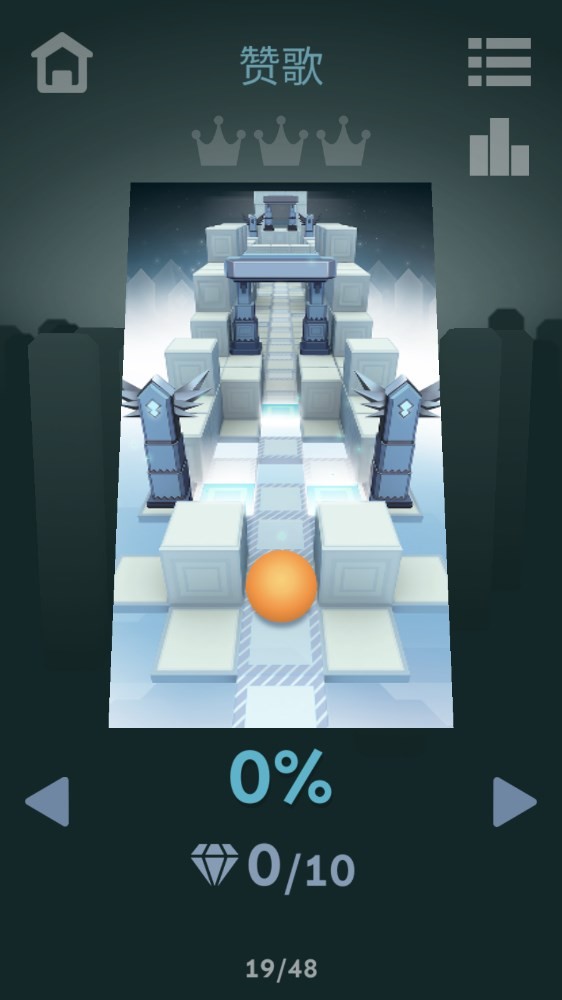 1、每一关对于刚开始玩的人群来说,还是比较有挑战性的,因为你要控制好手指滑动的距离和速度,使它恰到好处,还要躲避各种障碍物。不过好在,第一关的速度是缓慢的,障碍物也比较少,而且有些只是摆设,所以通关也不难,游戏一开始,我们会在一个比较宽阔哦的道路上,但是要注意那些带有花纹的砖块,靠近是就会从地上从升起,如一个小柱子一样,在不知道的情况下会使人措手不及,因此,要避开带花纹的砖块,走橙色的道路,但不要用力过大,导致从边缘滑落下去。