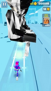 3、操作各种角色在轨道上尽情奔跑,灵活躲避障碍物,收集到更多的金币和钻石;