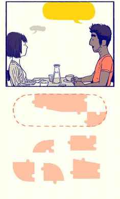 1、丰富的细节和隐喻,用拼图碎片的难易程度象征两人交谈的轻松与融洽程度等。