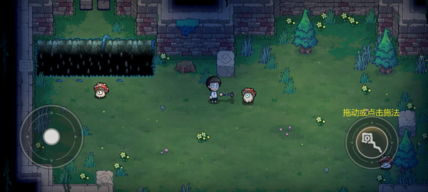 3、接着进入游戏,玩家可通过左侧轮盘来控制角色移动,拖到或点击法杖按钮施法攻击;
