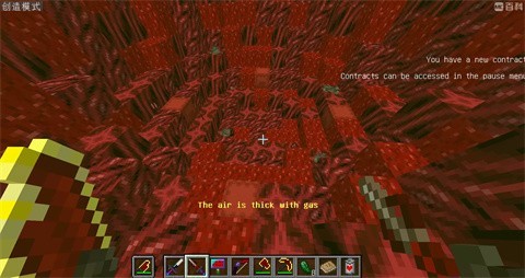 还有一个生成在干沙地的陨石肉坑,肉坑下面有一个陨石,里面有很多裂兽、瘟疫蚊、步行兽。仔细看里面有四个红色的潜影盒,把它们收起来,盒子里面的东西也很肥。但需要注意一些黄色的气体,这些是毒气。生成于底层,碰到会扣血。可以通过佩戴防毒面具解决!