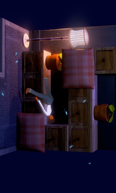 2、布景后观察事件卡,利用趴行惯性推物品到指定位置,任务完成即可睡觉。