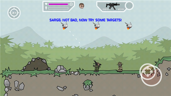 《Mini Militia》(涂鸦军团2:迷你民兵)是一款节奏快速、风格独特的横版射击类安卓游戏。游戏采用鲜明的涂鸦画风,将火柴人角色与多样化的武器系统巧妙结合,通过灵活操作实现移动、转向与射击的同步控制,营造出轻松又激烈的战斗氛围。