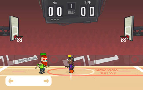 2、左下角双箭头控制移动,右侧按住跳投,空中需及时松手才能出手。