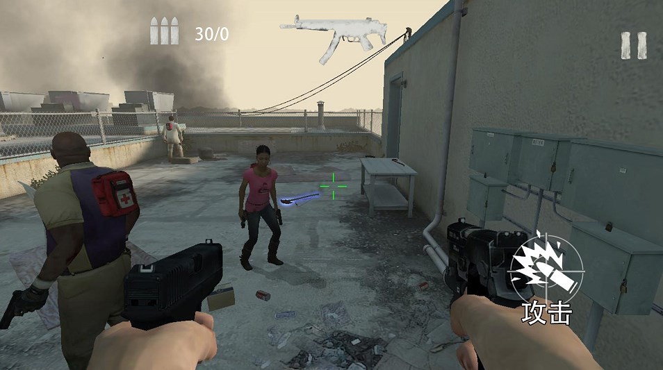 2.在城市中射击僵尸,带上你的智慧和勇气,击杀所有僵尸,探索各大区域,不断的射击。
