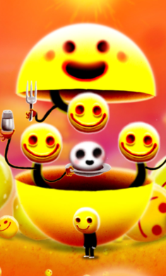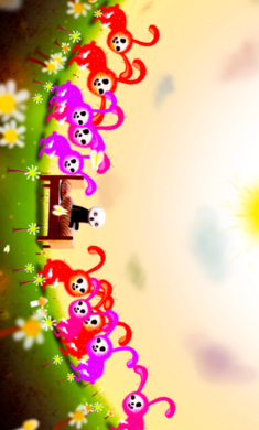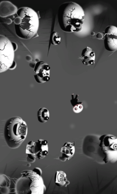 6、随后右边的的笑脸娃娃也会出现,你需要把它一层一层的剥开,并摇晃每一层外壳中间的绳子,直到那个外壳变成红色恐怖的魔鬼。