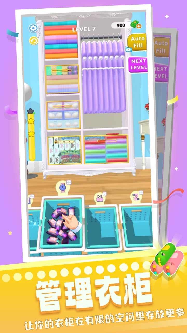 魔法衣柜是一款深受强迫症喜爱的收纳游戏。在魔法衣柜中,玩家将把乱糟糟的衣着服饰全部都收拾的井井有条,展开自己的收纳大作战,解锁不同类型的关卡,享受治愈又解压的游戏过程,感受轻松的游戏氛围。