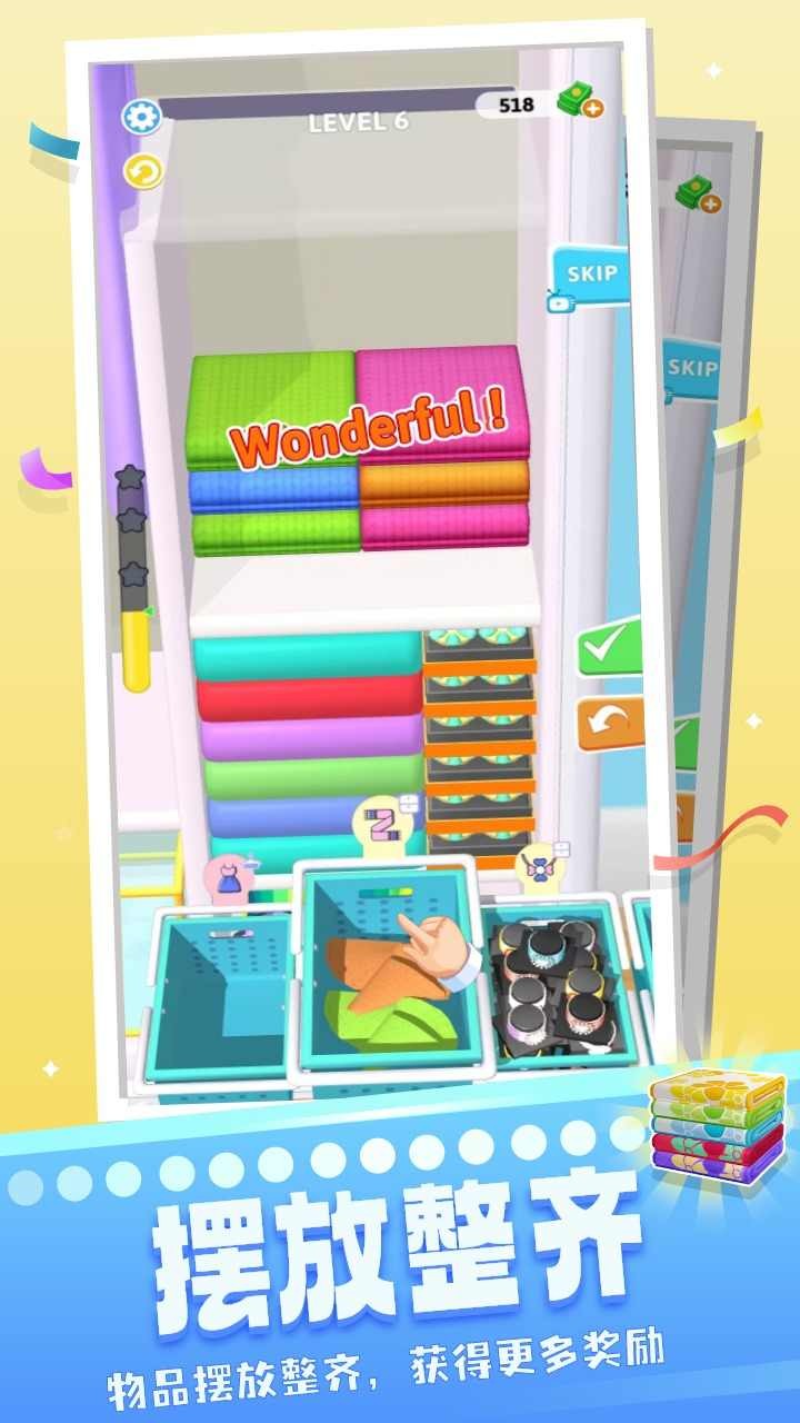 1.比较考验玩家的观察能力和思维能力,将衣服收纳整洁也需要小技巧。