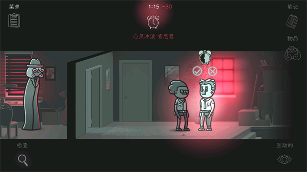 4、在心灵世界里有三个门可以让你调查,分别会向你展示一个事实、一个疑惑和一个谎言,你需要进入这些门里来寻找线索。