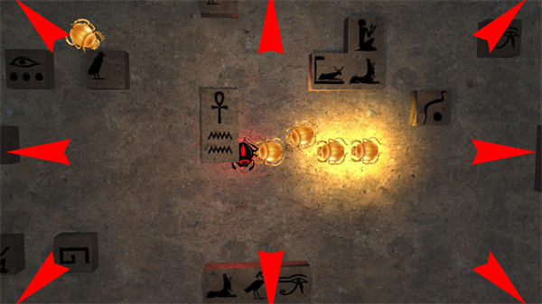 象形文字翩翩起舞。障碍物脉动着。