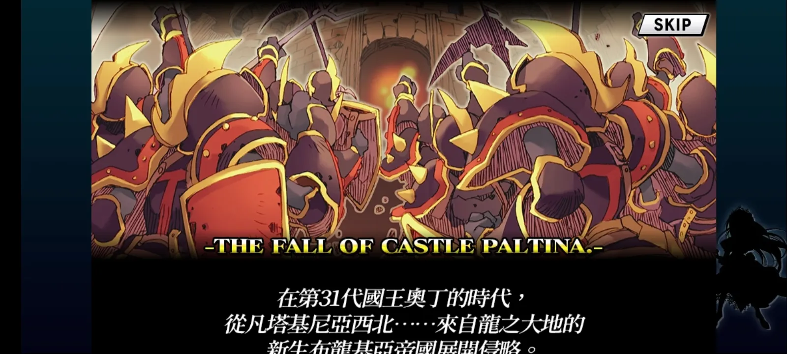 5、交锋后进入白兵战。白兵战时会有几率触发"闪击",可以直接击中对方队长,以打断技能。 画面上方的技能槽涨满的时候,就可以使用SKILL-技能,画面下方是双方优劣势,有9个等级。技能系统敌方也能用,叫愤怒槽,一共三层,随着战斗逐渐增加,第二层开始会附带属性攻击,一旦到第三层MAX会释放持有的卡片的技能,然后愤怒槽清空。注意就算把当前敌方打倒,顺位敌方会继承愤怒槽,而如果战胜了我方会清空愤怒槽。当然如果卡片和职业不符合一样无法用技能,但是会一直处于MAX状态。