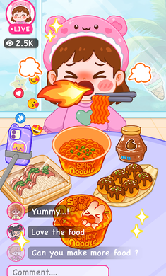 吃播明星ASMR直播手游是一款休闲模拟类手游,以美食制作、直播互动与ASMR音效为核心,玩家将扮演吃播主播,通过烹饪美食、布置直播间、与观众互动,逐步成长为高人气吃播明星。提供丰富的食材选择,包括传统中式菜肴、西式甜点、日式料理等,可自由搭配食材,制作出各种美味佳肴,如披萨、汉堡、寿司、糖葫芦等。烹饪过程模拟真实操作,包括切配、搅拌、烹饪、装盘等步骤,每个环节都配有柔和的触发音效,沉浸感满满。