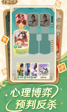 三国杀正面对决是一款以三国为背景的策略卡牌对战游戏,融入《三国杀》经典玩法,玩家可以自由组建卡牌,在三条战线中部署武将、使用锦囊以应对随机天命事件,强调策略布阵与心理博弈,体验智力对决的乐趣。游戏操作简单,易上手,快节奏卡牌对战,随时随地都能来一局,感兴趣的玩家欢迎下载游玩。