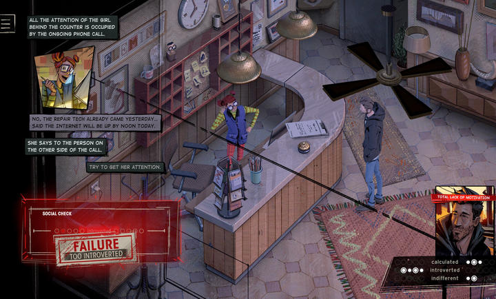 懊悔谷手游是一款等距视角叙事角色扮演游戏,背景设定在美国西南部荒凉的小型汽车旅馆(desert motel),整体氛围既现实又包含超现实感,恰似一出时间与心灵交错的悬疑剧,玩家将扮演一位被困在时间循环中的男子,他周围有着各种各样的情感故事,并且各个身怀惊人秘密。核心机制是时间循环。每一次循环,都有有限的时间(如Demo中约47分钟)体验剧情、交互人物与环境,但人格状态会带来截然不同的体验路径。画面采用手绘与漫画风相结合的美术表现,辅以等俯视表现,整体视觉富有独特质感。