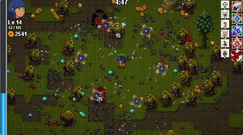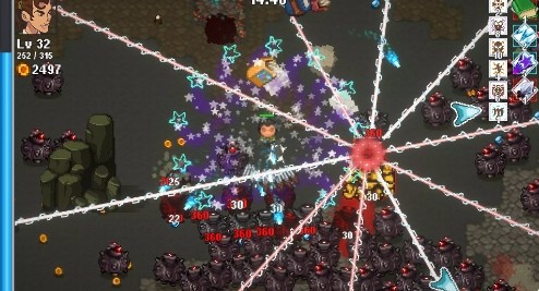 核心目标是在怪物浪潮中存活20分钟。随着时间推移,敌人数量与强度逐步提升,后期满屏怪物带来极具压迫感的挑战。