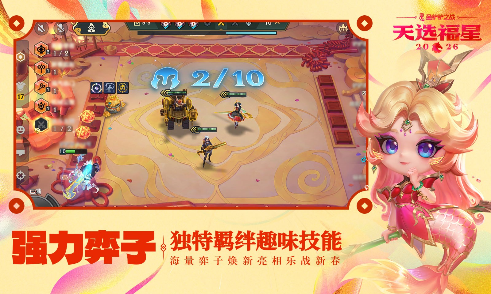- 15名福星守护神弈子可通过局内解锁机制激活,并触发趣味羁绊,带来强力增益!每局最多上阵一名福星守护神弈子,ta们不会占用人口,但能激活强力增益,助你在战斗中大放异彩;