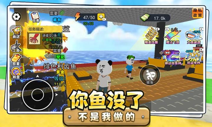 1、自由经营与多元玩法融合,独创的“偷鱼”机制允许在对手未察觉时窃取高价值鱼种,形成“抓-卖-偷”的闭环经营体系。