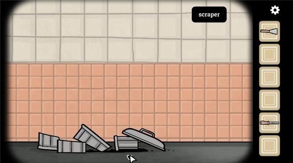 2、用锉刀割断下水道的「铁杆」,再用其拨动并拿到「钥匙」,接着回来,先将布放在婴儿的屁股下面,再用别针组成尿布,然后喂奶瓶并喝完后获得「脏尿布」。