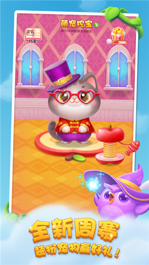 在关卡中开出的礼包道具,需要在本次挑战中消耗掉,不会保留到下次哦!关卡开始前,可以使用银币购买面板上的小道具,增加通关的能力,每次挑战新关卡时,需要关注本关过关目标,每个关卡都有所不同哦!巧妙利用特效之间的交换,会触发很多神奇的效果!四连直线和横线特效在相邻时,两个互相拖动,两者同时触发,构成十字架。四连直线+爆炸特效,可构成竖着四个横排或竖排,同时清空,威力超强!五连+四连特效,可让全屏所有四连特效相同颜色的宠物,全部化为四连特效,不过横竖方向是随机的。五连+爆炸特效,全屏所有爆炸特效相同颜色的宠物,全部化为爆炸特效。五连+五连,极难出现的第一大特效。两者相邻相互拖动,直接清屏,棋盘上的所有小动物全部消除,这种效果适用于打豆荚,破冰。