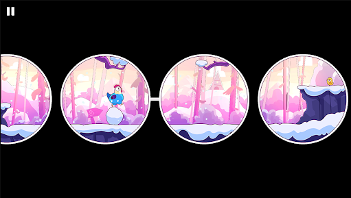 游戏的核心机制围绕“分区域时间控制”展开,在每个关卡中,画面被分割成多个区域,每个区域都有独立的圆形控制按钮。玩家需要通过点击或滑动屏幕,启动或暂停不同区域的时间流动,为鸡妈妈开辟出一条安全的路径,帮助她顺利通过各种机关陷阱。
