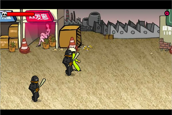 2、多样化的格斗技巧:玩家可以通过组合享受多种格斗乐趣,抓敌人、小飞踢、出拳、大飞踢等技巧。