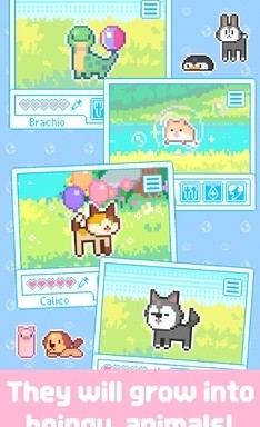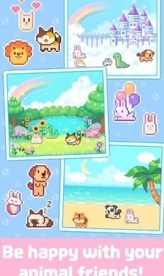 2、像素风与个性化装扮,采用Q版像素风格,角色设计萌系可爱,可自由装饰动物生活空间,使用多种主题、背景、贴纸。