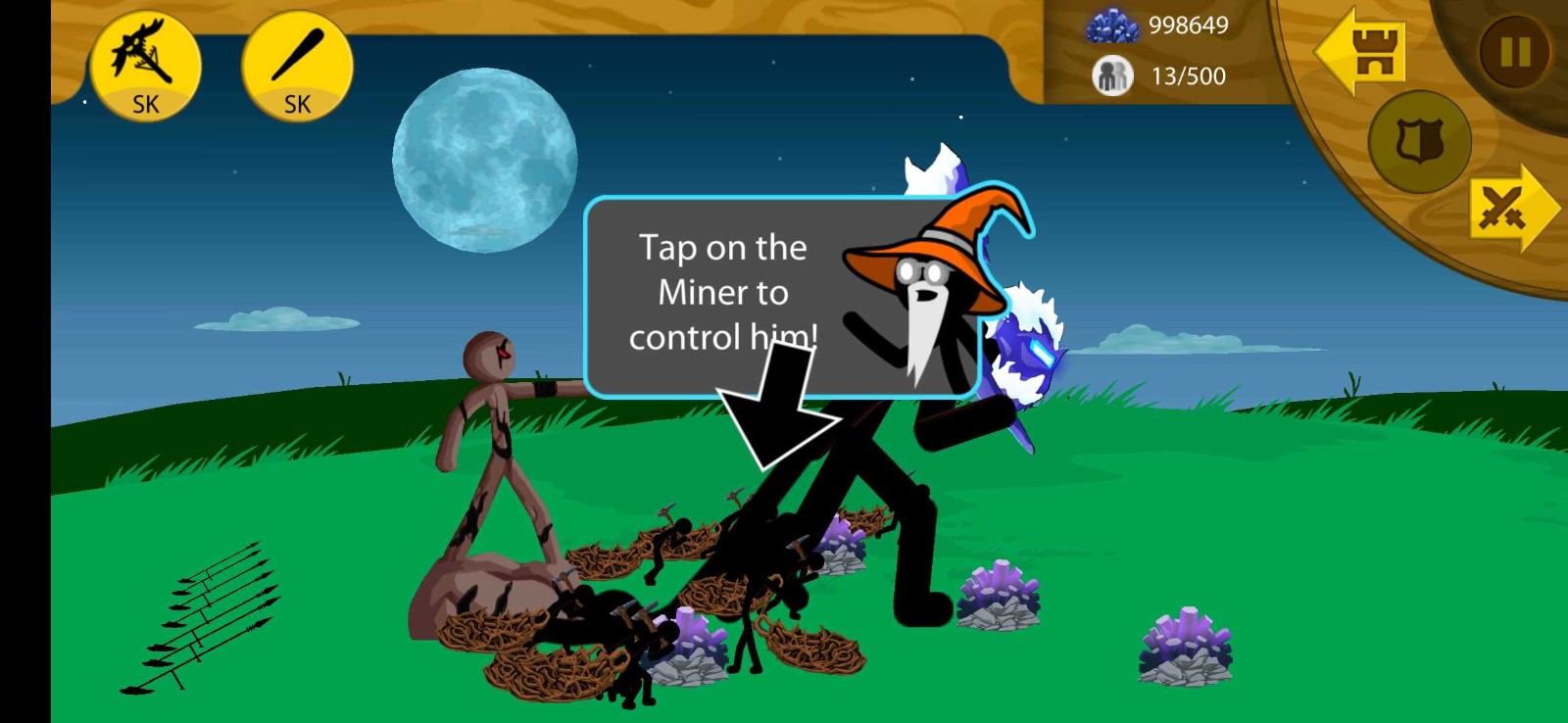 这样我们就能快速获得足够多的矿石,用来召唤更多攻击性火柴人。