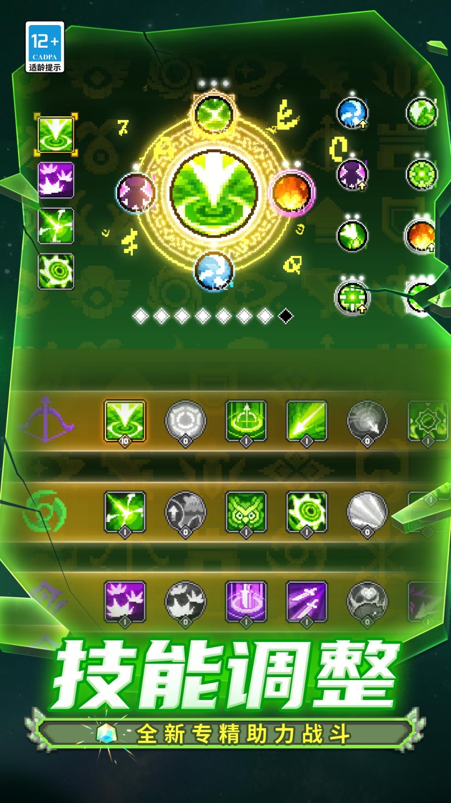技能:等会儿我附图片,我看看能不能把不同的图片剪一起。目前看来似乎有交互的是射手的连续攻击加暴击配合刺客的暴击就会流血——暴击概率可以叠加12次,好像点满的话最大能有一半暴击率,那就很可观了,而且射手一开始平a就走路巨慢,正好用刺客的闪避突袭来弥补。
