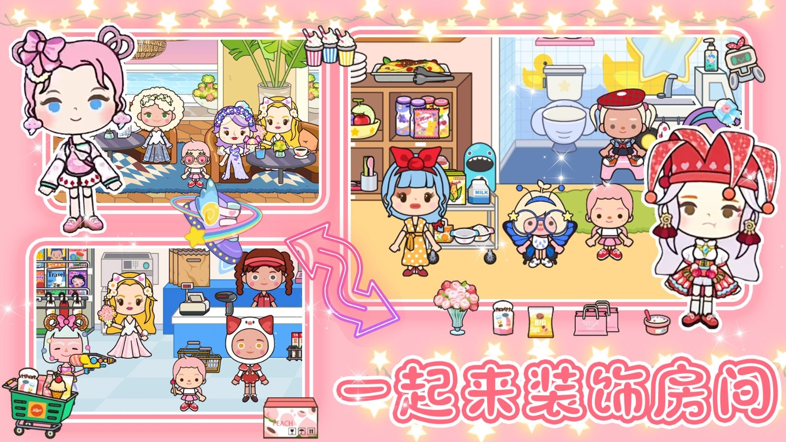 1.卡通精致风格,增加游戏乐趣,游戏众多,惊喜不断;这里还有很多的服饰套装可以自由搭配的,看看自己喜不喜欢吧。
