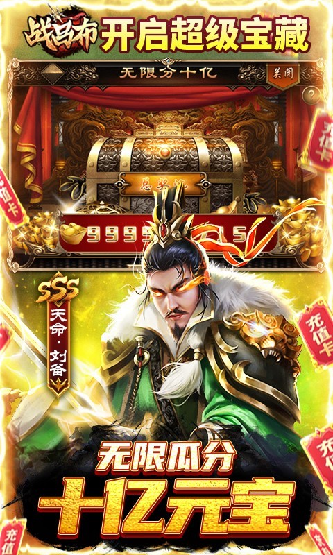 战吕布送五星关羽20万充是一款三国策略卡牌手游,在战吕布送五星关羽20万充,玩家上线即送五星神将关羽,还能无限瓜分十亿元宝,真福利无套路,升级还能领取20万红包,可以激活线下永久累充活动,轻松实现财富自由。