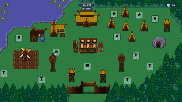 3、消灭所有的敌人后就可以回到白天,并用硬币来升级建造更多设施。维京英雄游戏