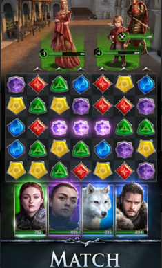 权力的游戏传奇三消国际服手游是一款以热门美剧《权力的游戏》为背景打造的益智角色扮演手机游戏,在这里你可以收集《权力的游戏》中的众多角色,组建一支梦之队。每个角色都有独特的技能和装备,以益智游戏的解谜战斗为核心玩法,通过三消的方式产生能量,对敌人造成强大的打击。不同颜色的道具会释放对应的技能,单次消除的越多,释放的杀伤力越强,连击还将获得额外的奖励。
