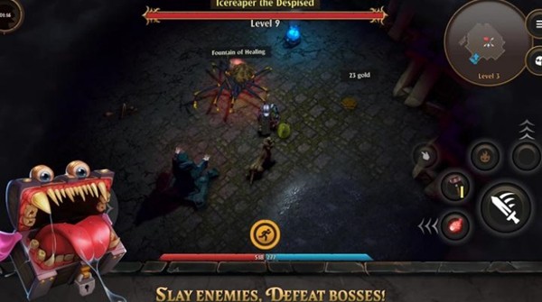 5、进入地牢和各种怪物战斗,击败这些怪物获得强力装备提升自己的实力,不断挑战一层层的怪物来体验新的冒险乐趣。