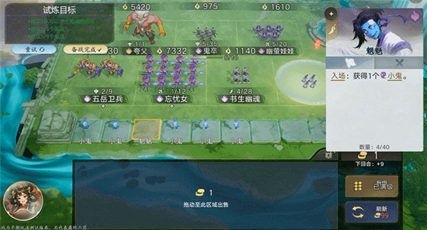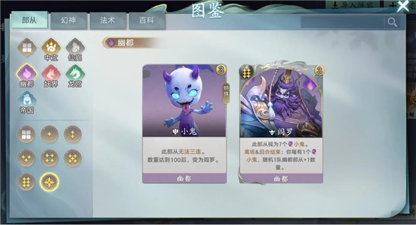 4)【小鬼】是地府的特殊部从,不仅可以上场作为战士提供战力,还可以出售作为经济资源,最重要的是:数量达到100后ta将变成幽都最高战力:阎罗!