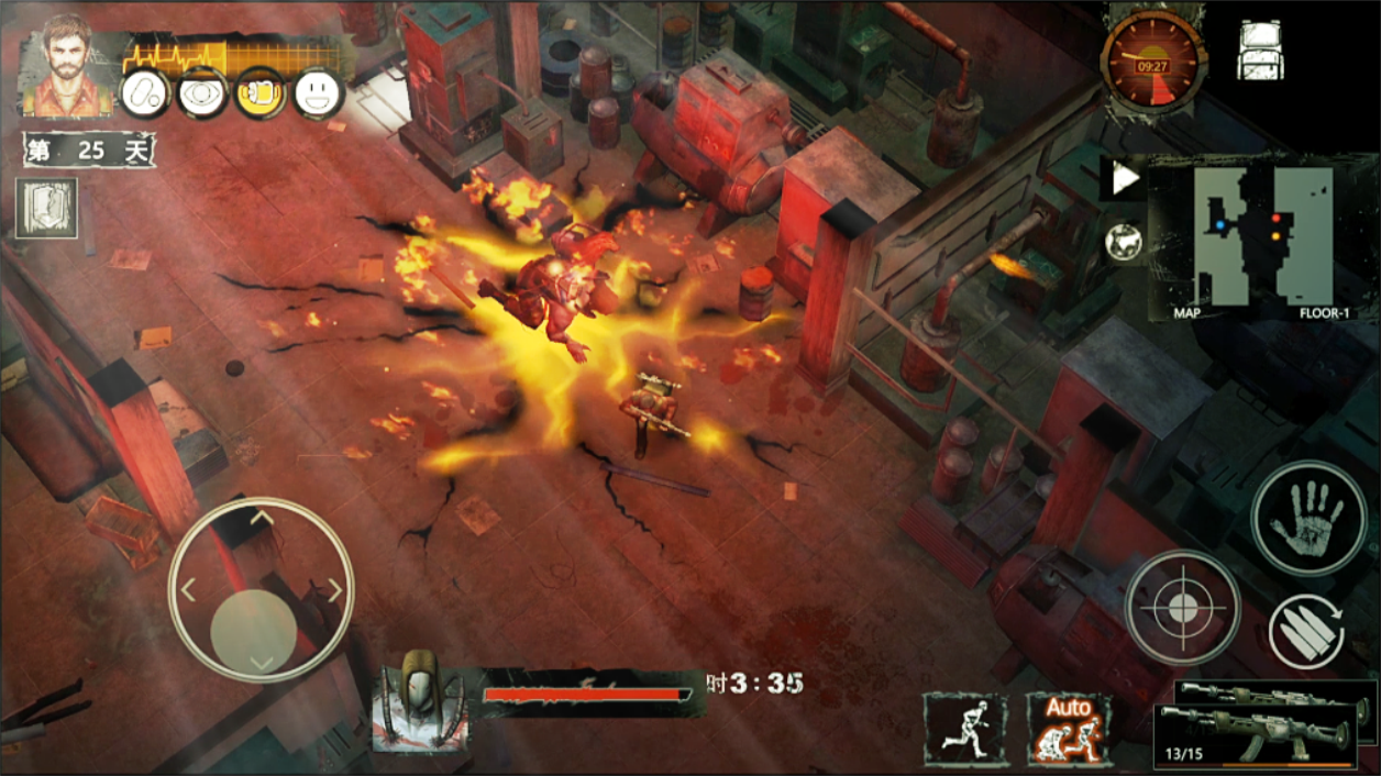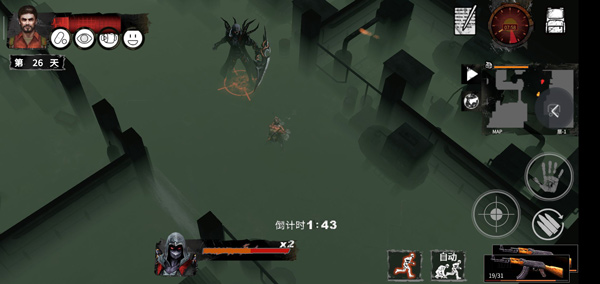 2、体力:体力为零时玩家战死。体力只有被攻击时才会流失,脱离战斗则自恢复。制造的攻击道具则可以更快击杀僵尸,也间接影响体力流失。
