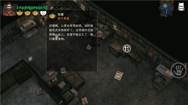 4、健康:健康为零时玩家病死。健康只有在产生疾病时才会流失,疾病则包括受伤(战斗中)、内伤(饮食问题)、药物依赖(嗑药)。疾病可以通过使用对应的药物进行治疗,并恢复对应的健康值。