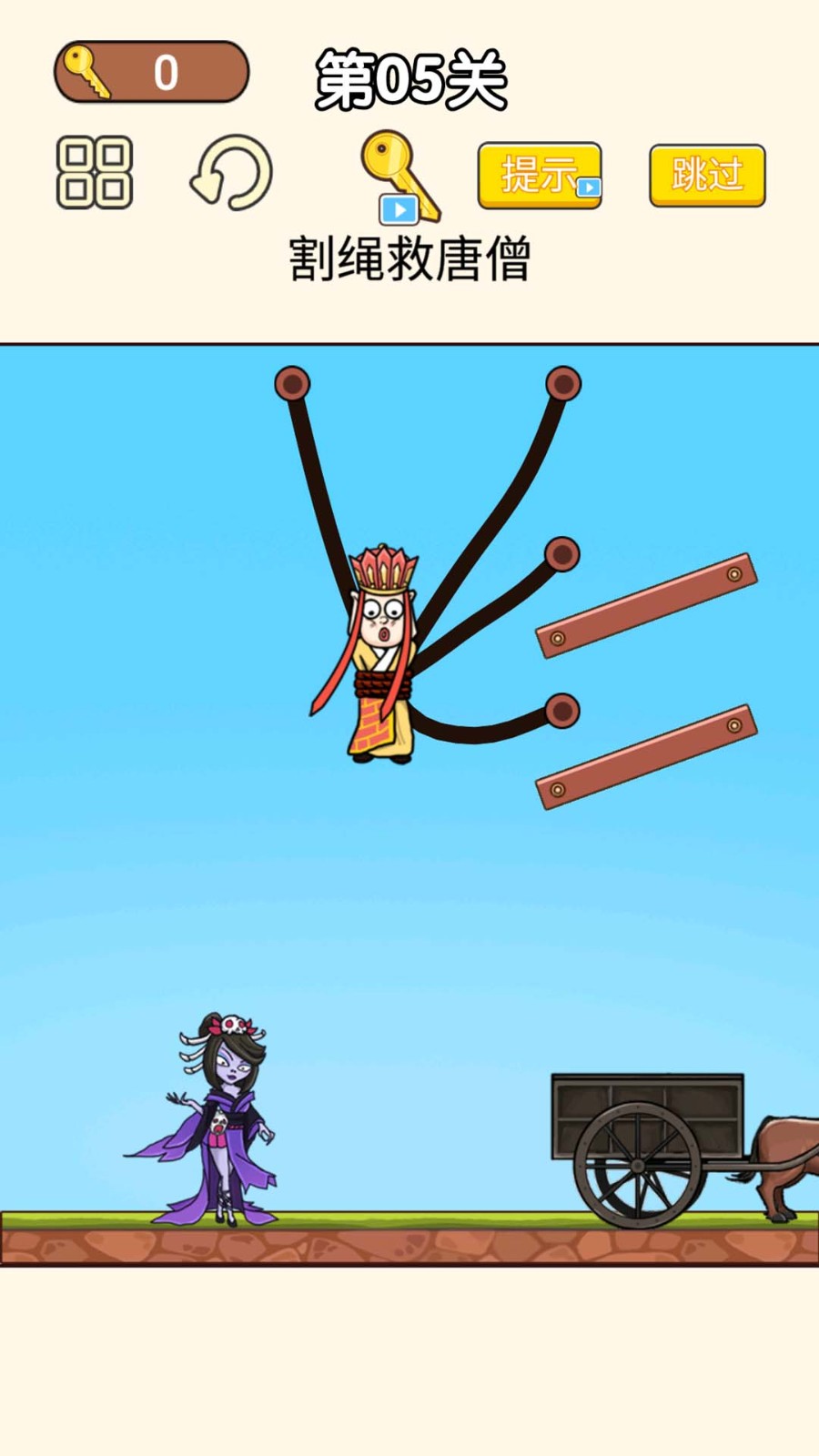 1.操作非常简单,只需要划动屏幕就能隔断绳子,解救唐僧。