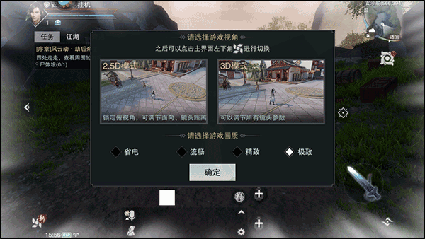1、运行游戏后,在标题界面选择并点击“踏入江湖”的选项;