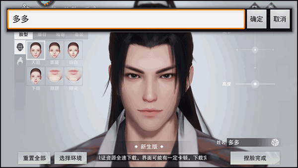 4、接着,在这里输入汉字昵称后选择并点击“捏脸完成”的选项;