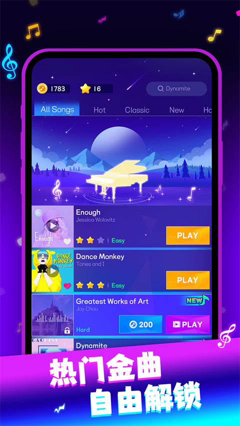 3、教学功能:内置互动式教学内容,帮助玩家学习钢琴基础技巧和乐理知识。